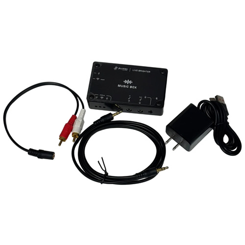 - RCA L/R → RCA-to-3.5mm adapter → Music Box.